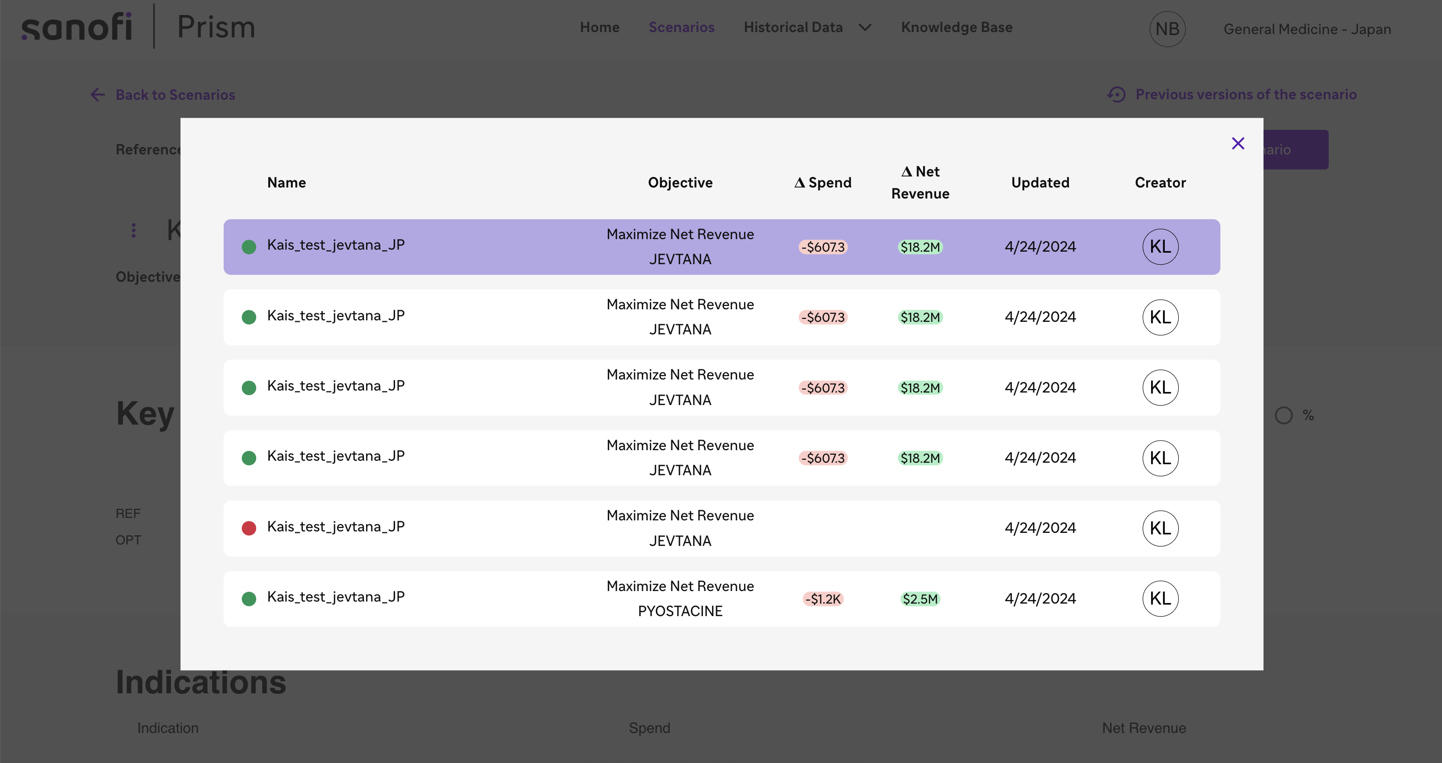 This includes the fact that it's now possible to open the history of iterations of a non-Dupixent scenario: